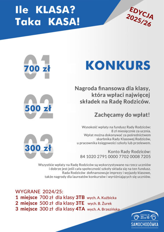 Konto Rady Rodziców: 84 1020 2791 0000 7702 0008 7205